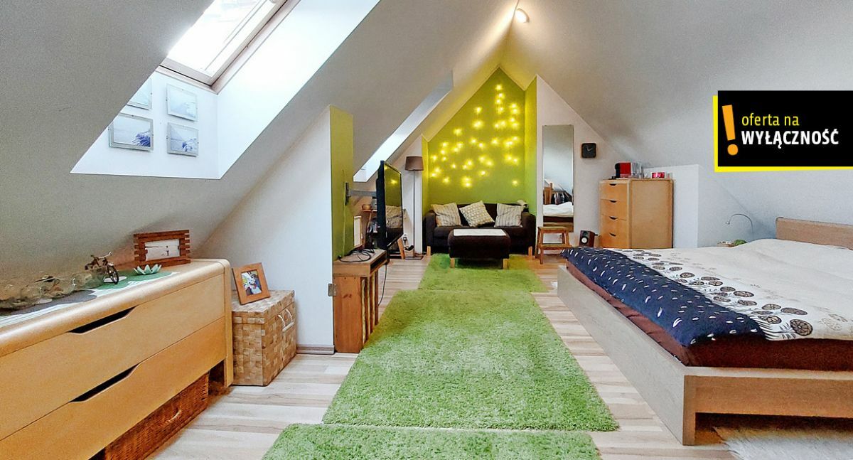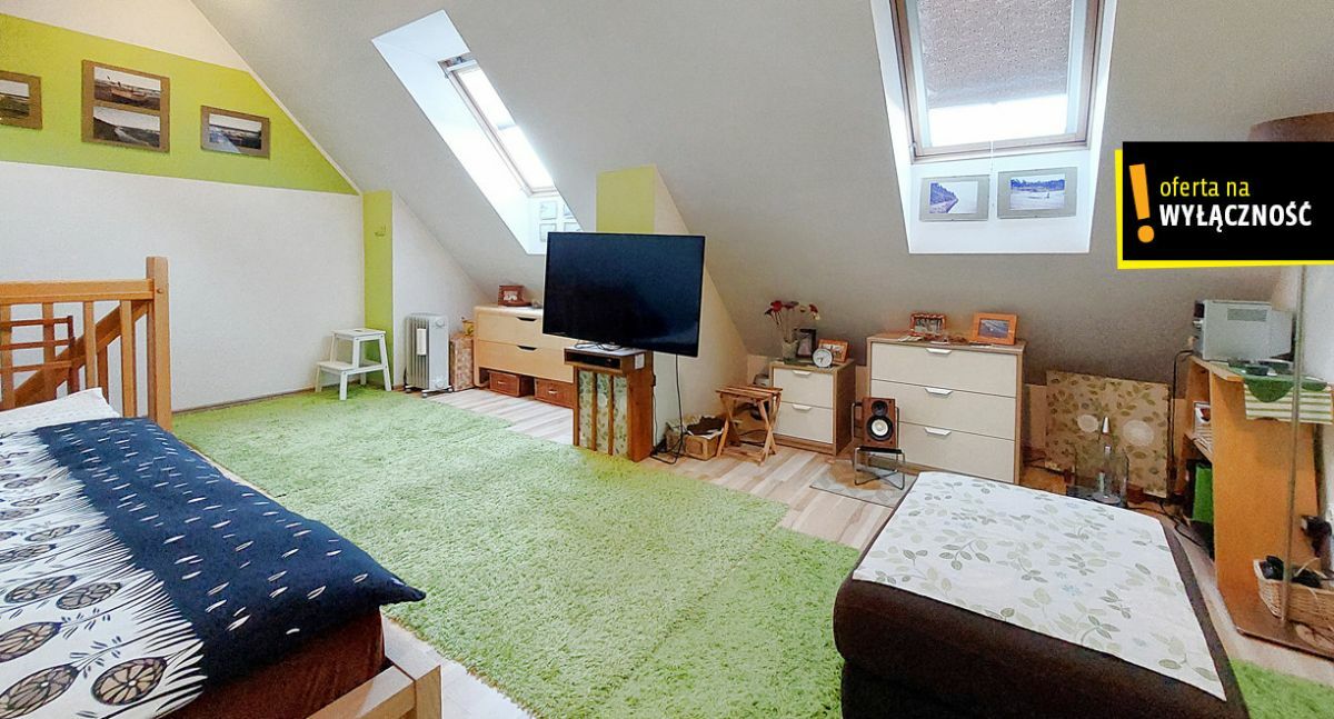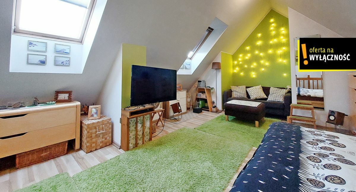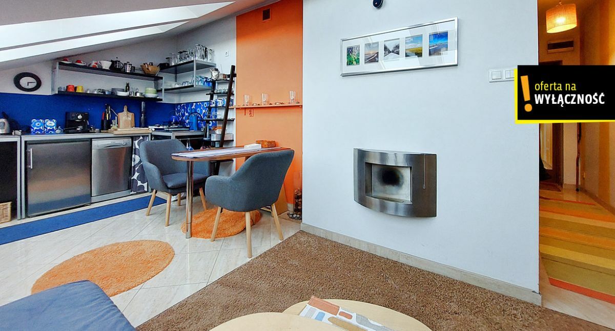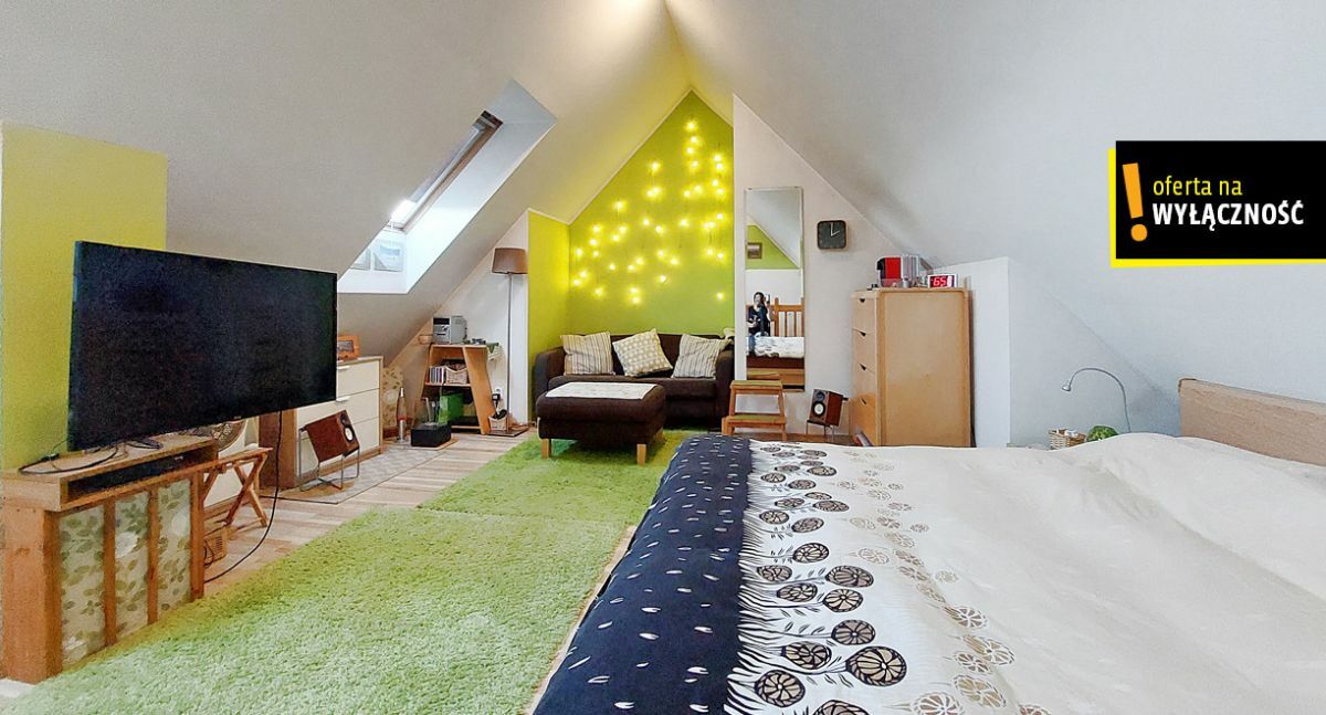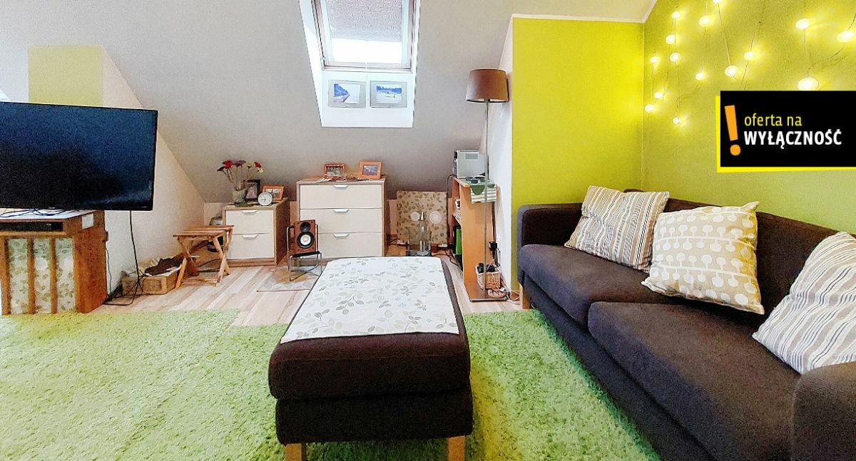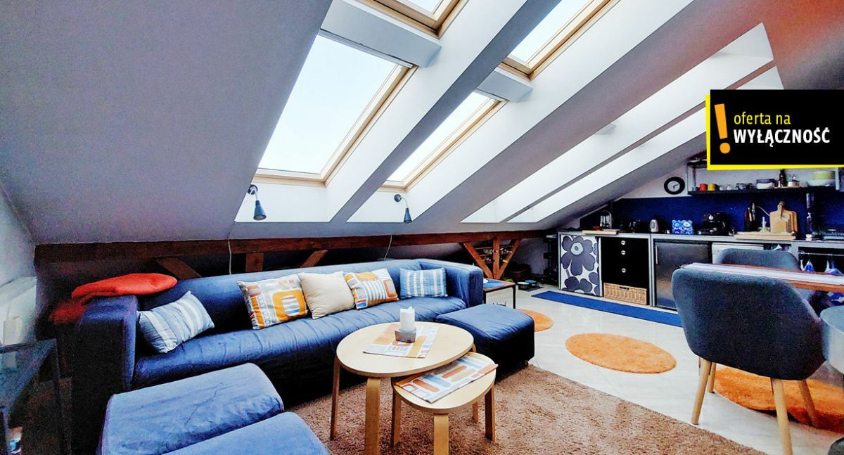 Powierzchnia wynikająca z księgi wieczystej to 35,69m2, lecz po tzw. podłodze jest dużo więcej, ponieważ mieszkanie posiada klimatyczne skosy z oknami dachowymi i jest dwupoziomowe.