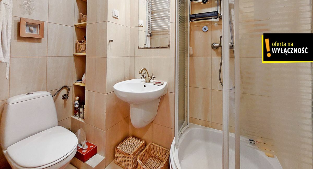 - łazienka z kabiną prysznicową i W.C.